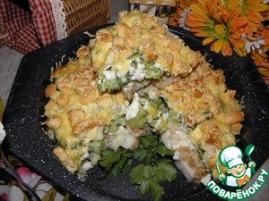 Наверно от счастья не скрою улыбку! Сегодня готовила вкусную рыбку! Хочу поделиться рецептом друзья! Отличная рыбка! Довольна семья! Запеканка очень сочной, нежной получается! Будет вкусно неизбежно, вряд ли что останется! Рыбка станет золотой, с ароматною капустой..! Соус просто неземной..! Он молочный, очень вкусный! А еще в ней хороши, наши чудо сухари..! И конечно в довершение, всех собой укроет сыр! Мы получим наслаждение, будет славный рыбный пир! Просто чудо запеканка! И гарантии любые! Ждет вас рыбная приманка..! На здоровье дорогие!