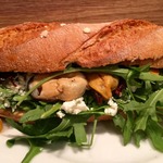 Сэндвич с мидиями, вялеными помидорами и рукколой