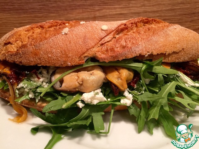Рецепт «Сэндвич с мидиями, вялеными помидорами и рукколой»: