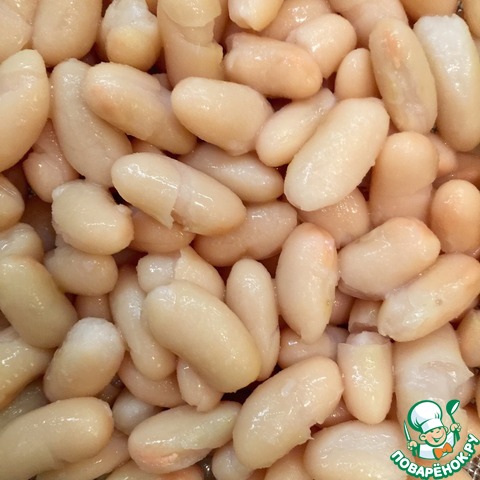 Фасоль сливаем, промываем в дуршлаге и туда же, в салатницу.