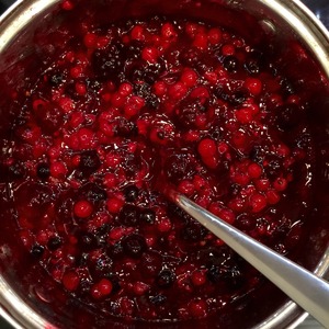 Добавляем ягоды и хорошо прогреваем еще пару минут. У меня была черная и красная смородина, и буквально 100 грамм малины, вишни и клубники. Выключаем и оставляем на 10 минут.