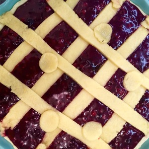 Достаем, выливаем начинку. Не лейте слишком много! Сверху делаем решетку. Украшайте как хотите. Лично у меня ручки растут не оттуда, поэтому я даже не пыталась)) И снова моя ошибка-решетку делайте с зазором на боках! Из-за того, что начинка была еще теплая, а тесто масляное-оно начало таять, и по бокам сужаться. ( В общем если для вас очень важна аккуратность-учтите это. Ставим в разогретую до 200 градусов духовку на 40 минут.