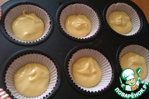 Формочки лучше всего использовать бумажные. И конечно железную подставку под них, иначе бумажная формочка распрямиться и будет лепёшка! Наполняем на одну треть, если ложить больше тесто выползет. Ставим в духовку темпиратура150 градусов. Пекутся очень быстро от 10 до 15 минут. Нужно поглядывать не открывая духовки!