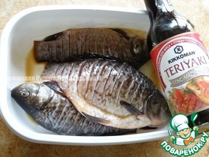 Полить карасей Терияки, слегка втереть и оставить на 15 минут