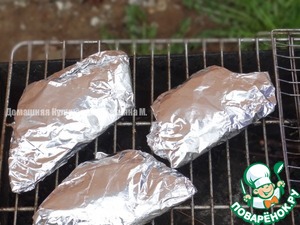 Жарить на решетке на жарких углях (можно класть непосредственно на угли) 5-7 минут.