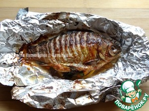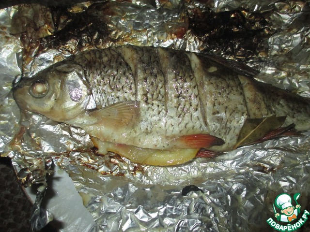 Аккуратно распаковать карасей и можно подавать прямо в лодочках из фольги, я переложила на тарелку