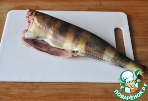 Берём рыбу и на одну половину наносим смесь из лука-порея.