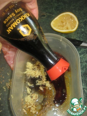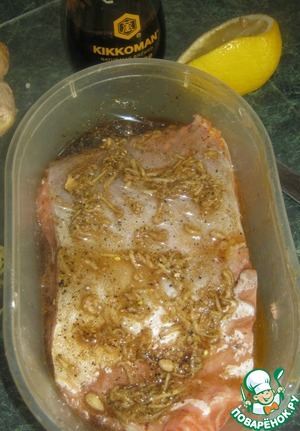 Смешать специи, имбирь, сок лимона, масло и "Мартини" с соевым соусом ТМ "Kikkoman"