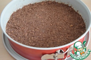 2/3 рассыпчатого теста насыпать в смазанную разъёмную форму для выпечки ( 26 см ) и руками утрамбовать по дну