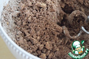 Смешиваем ингредиенты. Сначала перемешаем миксером - с крючкообразными насадками, а потом руками до крупной крошки.