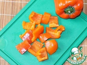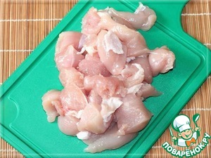 Мясо промыть, обсушить и нарезать толщиной до 2 сантиметров.