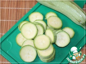 Кабачок нарезать кружочками толщиной 0,6 см.