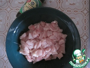 Отделяем мякоть от костей и нарезаем на кусочки 1-1,5 см
