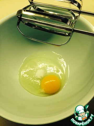 Взбить яйцо, добавив сахар и соль.