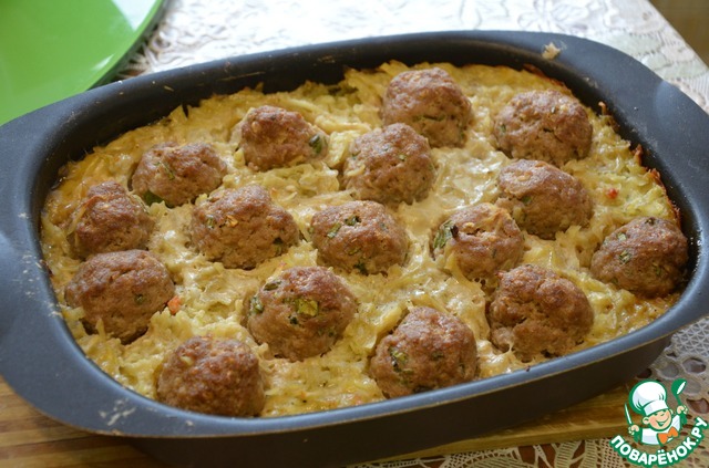 Уложить все на картофельный кугель и запекать при 190 градусах 40-50 минут