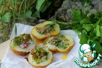 Этим соусом смазываем картофельные шашлычки со всех сторон.