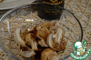 Дополнительно я взяла маленькие шампиньоны, замариновала их в соевом соусе (без соли!!!). Обжарила отдельно на гарнир.