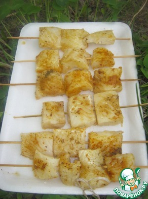 Нанизывать нашу рыбку на шпажки (вымоченные в воде)