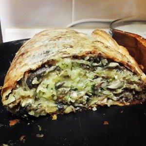 Грибы (у меня были вешенки) обжариваем с луком на масле до готовности, пока остывает делаем далее