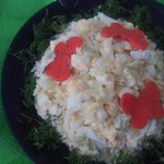 Чудесный необычный салат, бабочки дочка из красного сыра сделала, украсила салат наш, спасибо за рецепт!