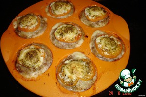 Hа фарш кладём по кружочку помидора,