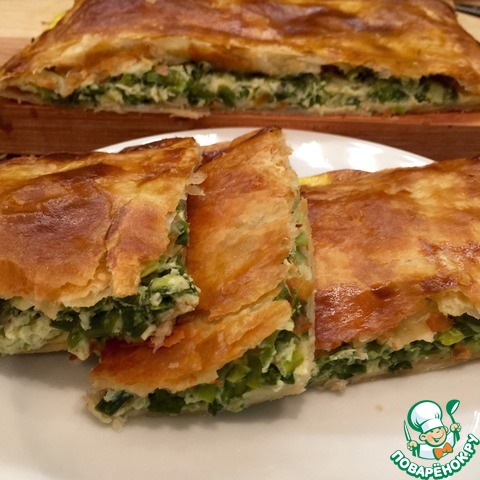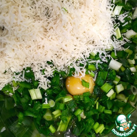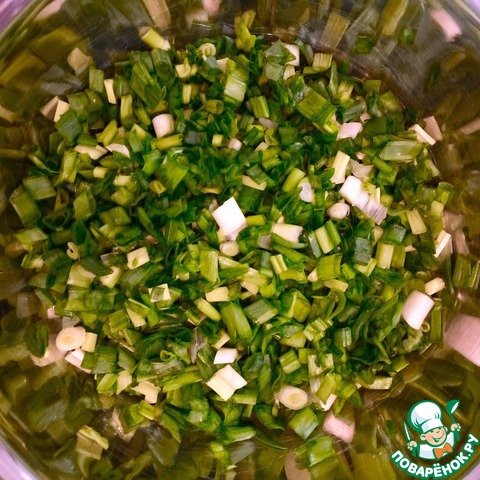 Рецепт пирога был увиден мной в программе "Смак", когда гостем была Юлия Высоцкая. Пирог настолько понравился своей легкостью и простотой, что я решила обязательно его приготовить, и не прогадала! Получился безумно ароматный пирожок с запахом лета! В общем всем любителям зеленого лука посвящается!)