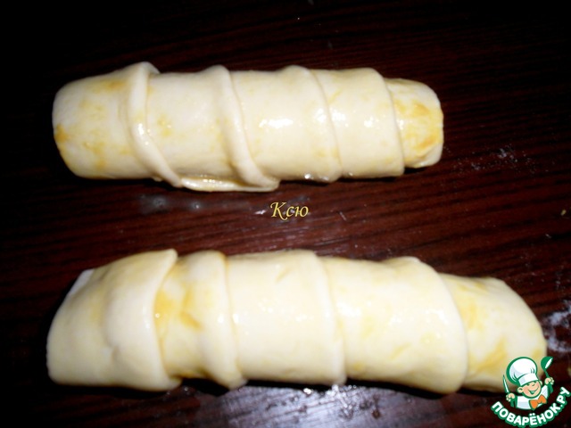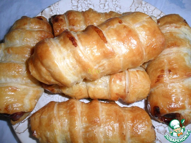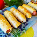 Рецепт «Куриные сосиски в слоёно-дрожжевом тесте»: