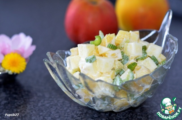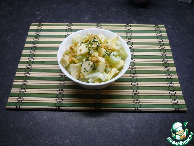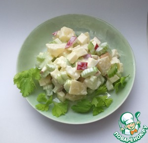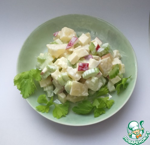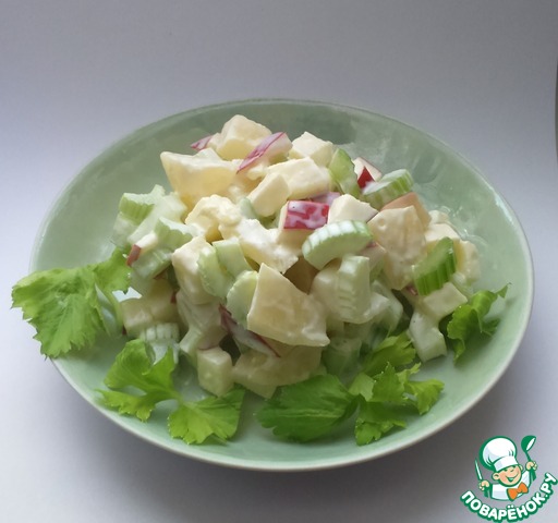 О пользе стеблей сельдерея еще в древности упоминал Гиппократ, называя его избавителем от всех хворей. Это растение является очень ценным продуктом, что и подтверждается его составом. В сельдерее собран уникальный набор витаминов, белков, минералов, который поддерживает человеческий организм в стабильном состоянии. Предлагаю попробовать очень легкий, очень сочный и свежий салатик. Когда приходят гости, этот салат исчезает в первую очередь.