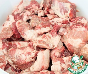 Мясо нарезаем кусками. Моем и обсушиваем.