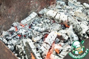 Для жарки я использовала березовые дрова, которые имеют достаточно плотную древесину и в процессе горения она образует жаркие угли.