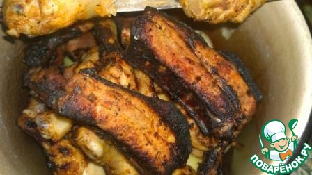 Не забываем водой тушить огонь при необходимости, но при этом не попадать на мясо.