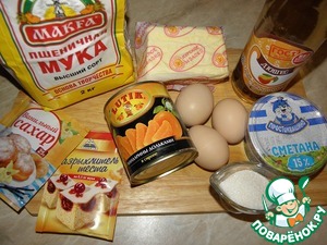Муку смешать с разрыхлителем, и добавить к общей массе