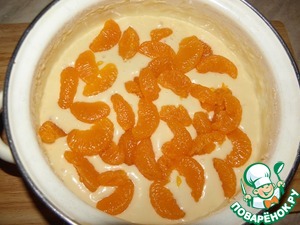 Мандарины немного обсушить на салфетке, и добавить к тесту. Аккуратно перемешать