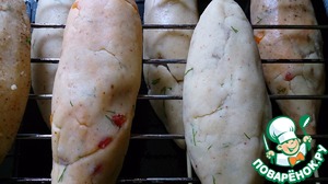 Картофель сырой 4 шт натерла, выжала сок, туда же прокрутила варенный картофель 1 шт, большой,и бекон прокрутила, добавила тмин и розмарин с гвоздикой и душистым перцем, предваритель растерла в ступе. Добавила муку с разрыхлителем (мука такая была), в картофельную лепешку положила фарш, а на фарш половинку охотничьей колбаски. Слепила, обваляла в муке, обжарила, со всех сторон, а затем выложила в форму, сверху положила бекон, остатки из пачки и поставила в духовку на 15 минут 190 гр. ЭТО ЧТО-то ! Запах невероятный, вкусные, пушистые. Вобщем РЕКОМЕНДУЮ!!! Вам большое спасибо, за наш суперский ужн с мужем
