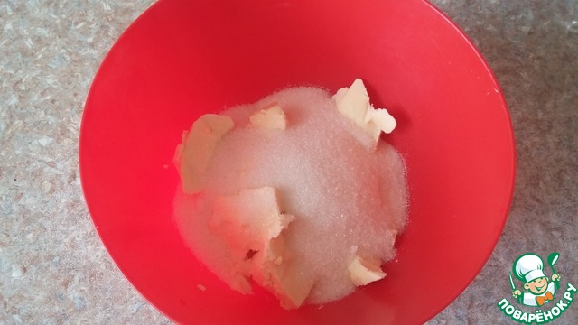 В масло (комнатной температуры) добавить сахар и ванильный сахар. Перемешать.