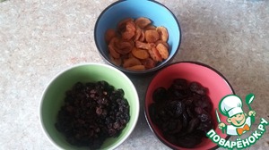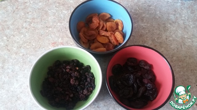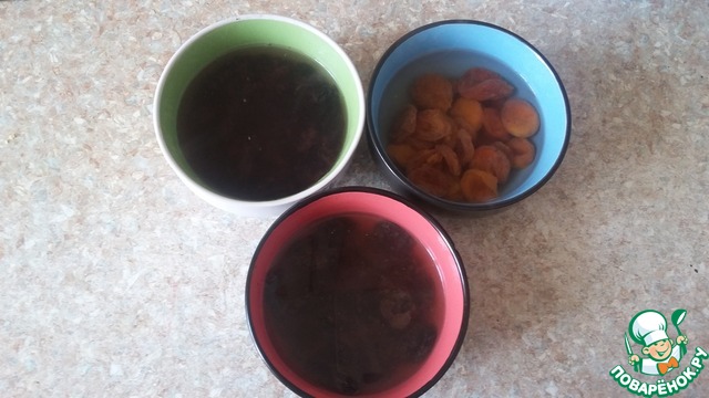 Курагу, чернослив, изюм - заливаем горячей водой и оставляем минут на 10-15.