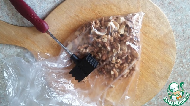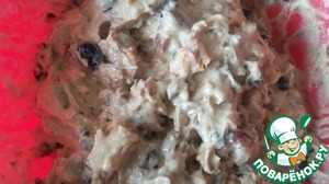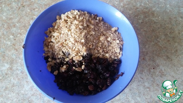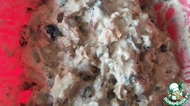 Тщательно перемешиваем смесь из сухофруктов и орехов с тестом.