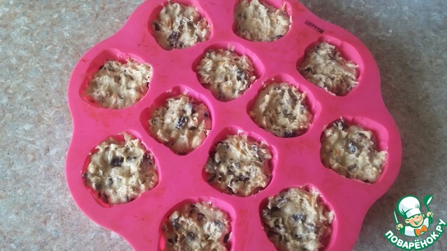 Формочки слегка смазываем растительным маслом (извиняюсь за потасканный вид формочек:)уж очень часто я пеку эти кексы...). Выкладываем тесто, оставив буквально см., тесто поднимется. Ставим в разогретую до 180 градусов, духовку. Выпекаем минут 20-25. Готовность проверяем спичкой.