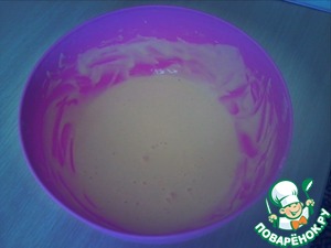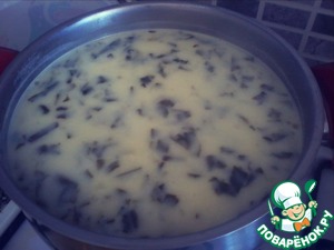 Затем из миски, все медленно выливаем в кастрюлю и также при этом постоянно мешаем содержимое.