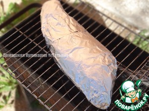 Готовить примерно 15 минут, затем проткнуть фольгу сверху в нескольких местах для насыщения дымом и поджарки верхушки;