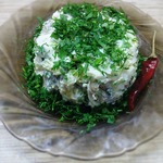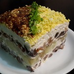 Итак, картофель отварить в кожуре, остудить, нарезать кубиками.