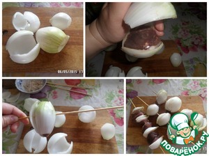 На очищенной луковице делам продольный надрез и снимаем слой. Так продолжаем делать, пока не останется маленькая луковица - сердцевина. Готовы наши "фантики".