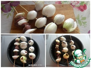 Выкладываем шпажки на противень, закрепив на бортиках.
