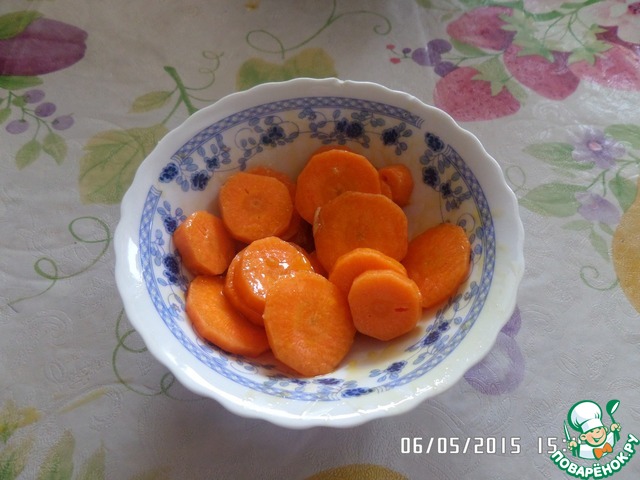• В чашку с морковью добавляем 1ч. л. горчичного масла и перемешиваем.