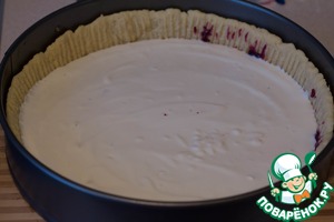 Сверху залить творожной массой и убрать в духовку минут на 40.