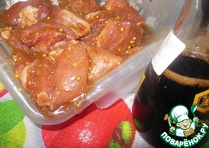Смешаем соевый соус, вино, масло, горчицу, соль и специи.