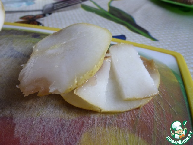 Груши режем произвольными плоскими кусочками. Лучше брать мягкие груши.