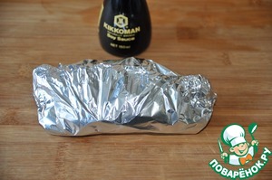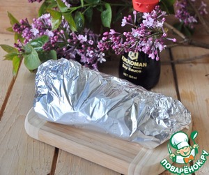 Заворачиваем фольгу. Кладём на угли на 10-15 минут в зависимости от силы жара.