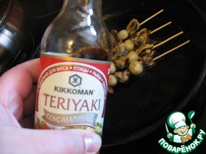 Лук и мидии залить соусом-маринадом Терияки "Киккоман" на 15 минут.