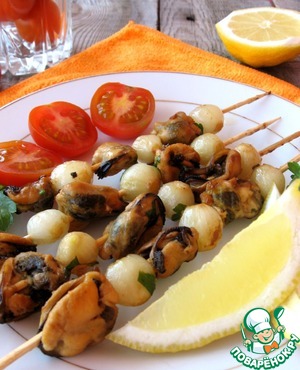 Рецепт «Шашлычки из мидий с жемчужным луком»: